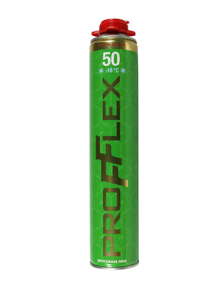 Пена монтажная профессиональная PROFFLEX PRO зимняя в баллоне объемом 750 мл обеспечивает выход до 50 литров готового продукта. Предназначена для использования в холодных условиях, сохраняя свои свойства при температурах до -10°C. Отличается высокой адгезией к большинству строительных материалов, таких как бетон, кирпич, дерево, металл и пластик. Быстро твердеет, образуя прочную и долговечную изоляцию. Подходит для применения с монтажным пистолетом, что обеспечивает точное нанесение и экономичный расход.