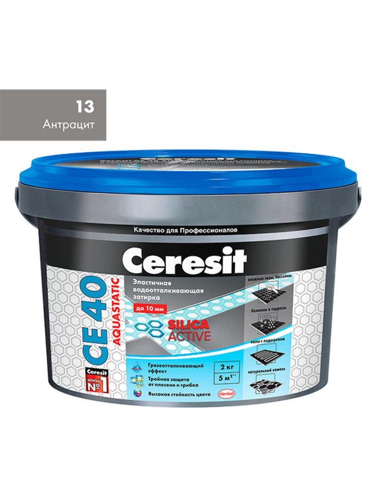 Долговечная защита швов и стильный внешний вид! Затирка аквастатик 2 кг (антрацит 13) предназначена для заполнения швов между плиткой в помещениях с повышенной влажностью — идеально подходит для ванных комнат, кухонь, душевых, бассейнов, балконов и террас. Технология Aquastatic защищает от воды и загрязнений, облегчая уход и продлевая срок службы облицовки.