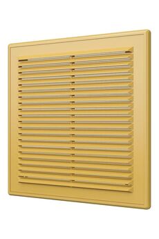 Тонкая вентиляционная решетка 385×385 мм с защитной сеткой, устойчива к влаге, проста в установке и обеспечивает надежную защиту от насекомых.