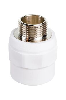 Комбинированная муфта PPR 25х1/2" с наружной резьбой, устойчива к коррозии, выдерживает до 25 бар и температуру до 95°C. Легкий монтаж и прочность.