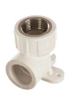 Устройте надёжное соединение труб c креплением на стену: PPR-угольник 20х3/4" ВР устойчив к давлению и температурам до 95°C.