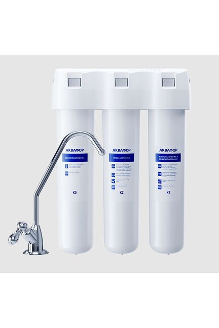 Компактный фильтр обеспечивает чистую питьевую воду без запаха и примесей, легко монтируется под мойкой и экономит место на кухне.